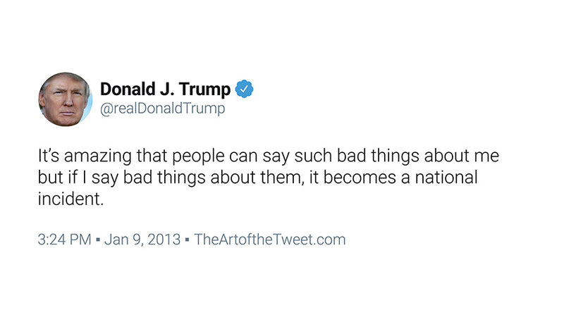 200 of the most popular real tweets by @realdonaldtrump. The Commander in Tweet held nothing back, from mic-drop punch lines during petty online feuds to sparring with the fake news media over the meaning of 'covfefe' to a heated 'nuclear button' measuring contest with North Korea.